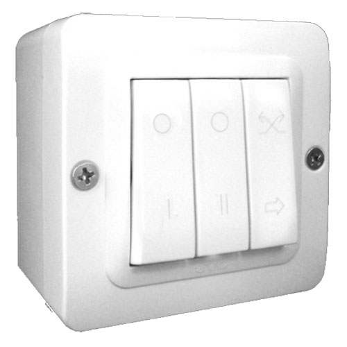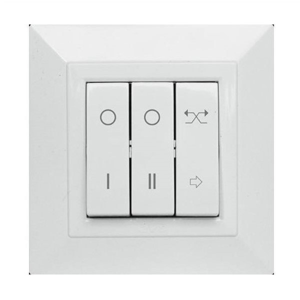 Fali, három kapcsolóval rendelkező szabályzó egység hővisszanyerős szellőztető készülékekhez, süllyesztett és falon kívüli kivitelben.