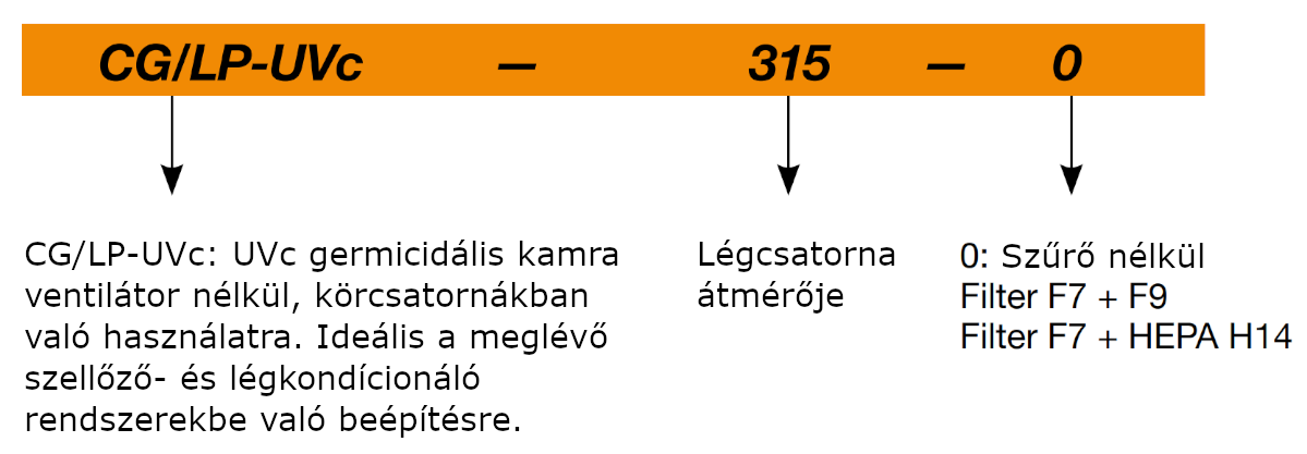 Sodeca CG/LP-UVc ultraviola szűrőház típusnév magyarázat